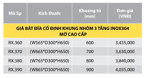 GIÁ BÁT ĐĨA CỐ ĐỊNH KHUNG NHÔM RELAXY 3 TẦNG INOX304 MỜ CAO CẤP RX.360-RX.370-RX.380-RX.390